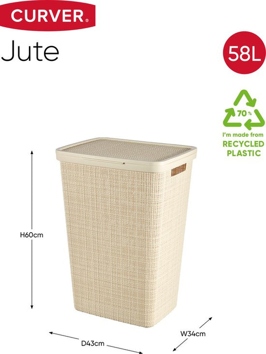 Curver Wasmand met Deksel Jute-Look 58L Crème