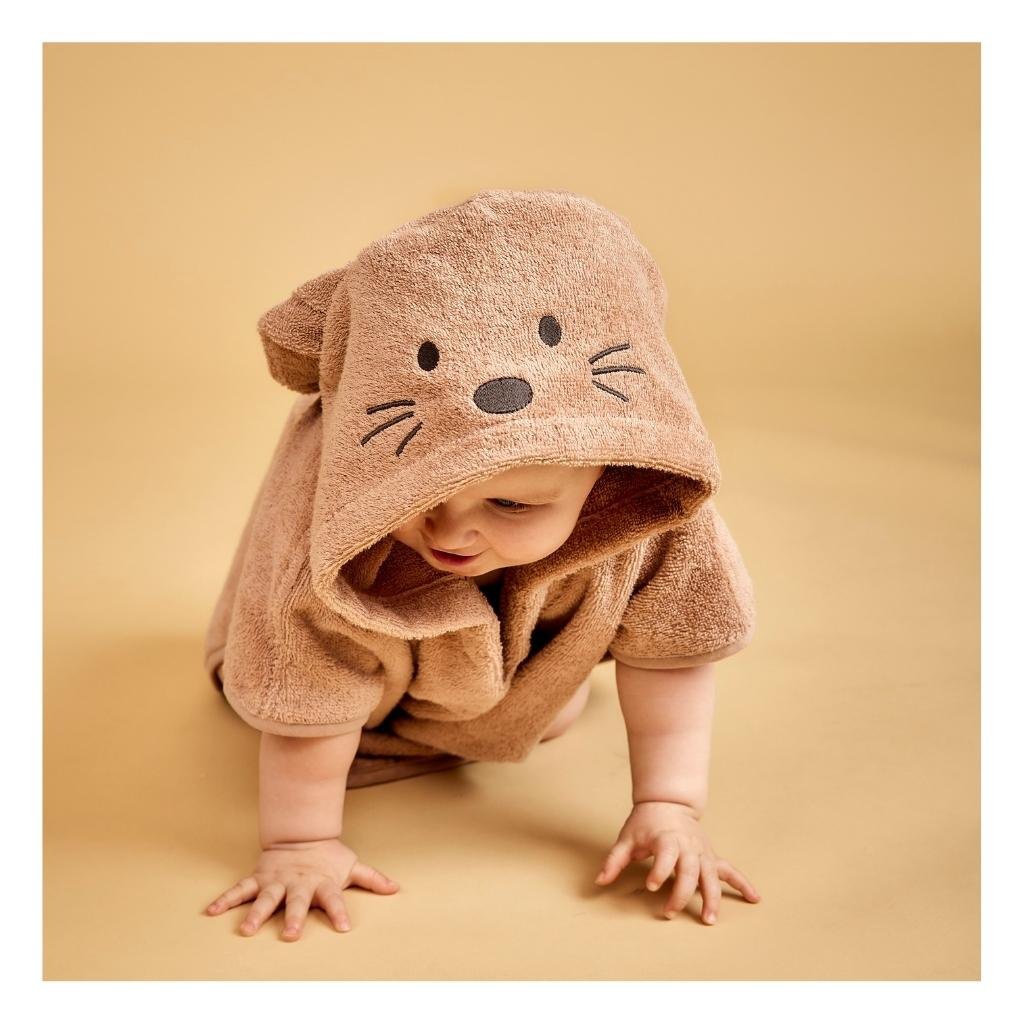 Superzachte poncho met geborduurd dierengezicht en oren op de capuchon. De Poncho is gemaakt van 100% zacht biologisch katoenen badstof, waardoor je kind droog en warm blijft.