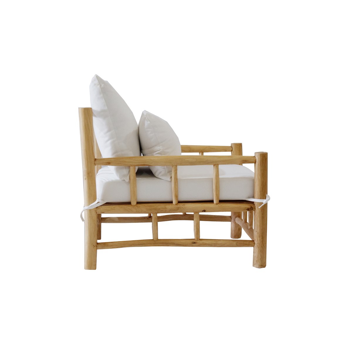 Gemaakt van solide, natuurlijk gekleurde teak, wordt de bank gekenmerkt door zijn hoge duurzaamheid en duurzaamheid. Teak staat bekend om zijn weerweerstand en is ideaal voor gebruik buitenshuis, omdat het zelfs stabiel blijft, zelfs bij het veranderen van weersomstandigheden en er lang mooi uitziet.