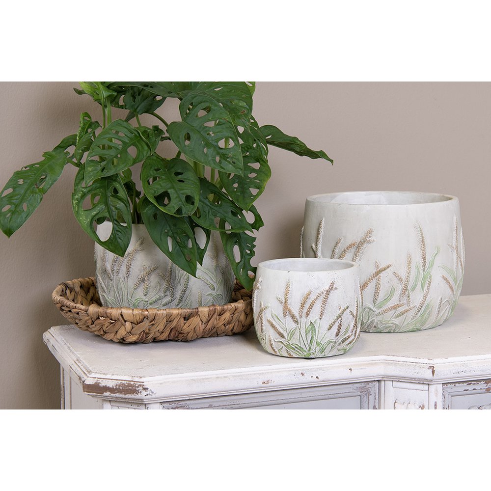 Stijlvolle decoratieve bloempot met een motief van korenhalmen, in een landelijke stijl.