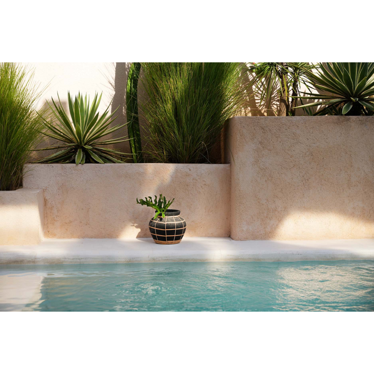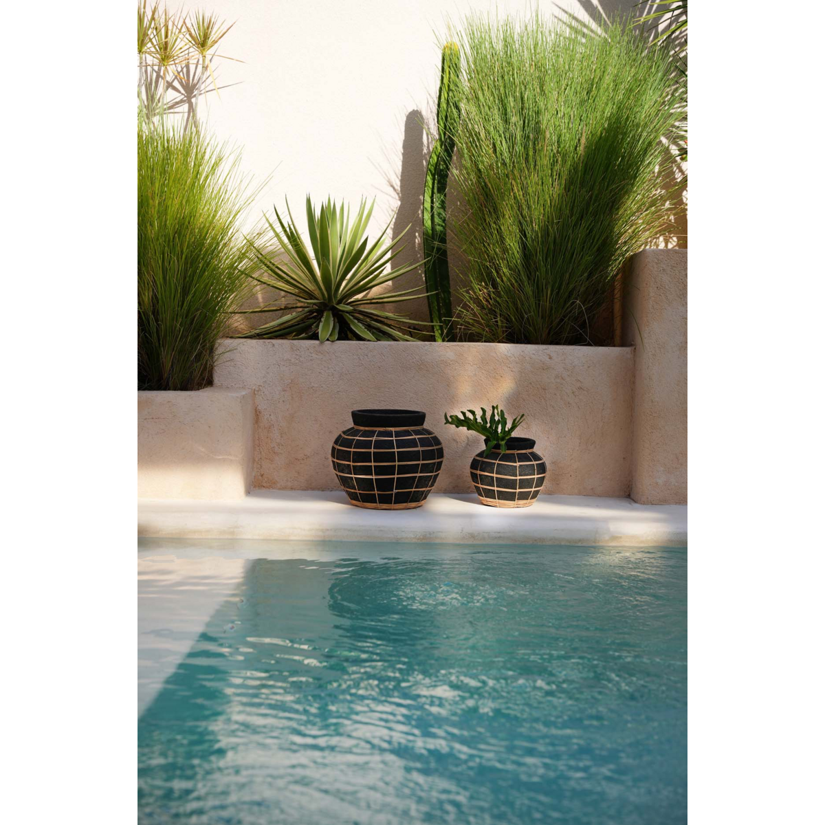 Geef je planten of bloemen (gedroogd) de vaas die ze verdienen met dit terracotta meesterwerk verkrijgbaar in drie maten. Het rotandetail geeft direct een kustgevoel aan je woonkamer, badkamer of overdekte buitenruimte. Let op: dit is geen waterdichte vaas en mag alleen met droogbloemen worden gebruikt.