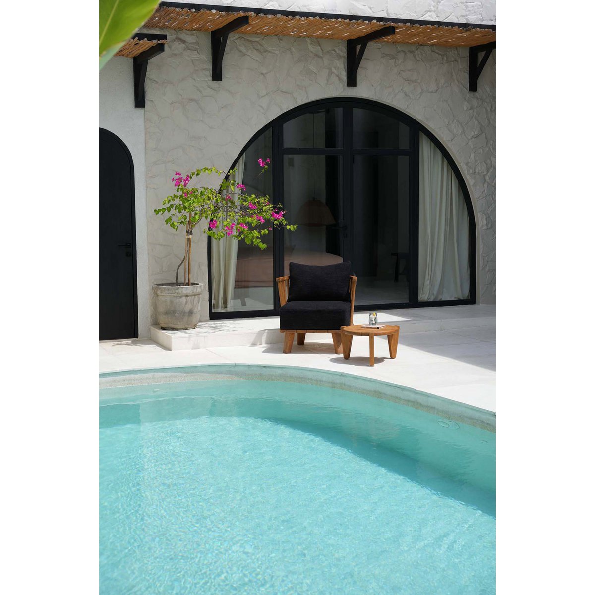 Verhoog uw binnen- of overdekte buiten woonruimte met onze zorgvuldig vervaardigde one-seater, gemaakt van teruggewonnen teakhout en met pluche binnenkussens. Elk stuk in onze collectie heeft een unieke geschiedenis en voegt een sfeer van elegantie toe aan uw interieur DCOR. Of u nu op zoek bent naar een gezellige plek om een goed boek te lezen of gewoon wilt koesteren in de schoonheid van uw binnenomgeving, onze one-seater biedt de perfecte haven. Het wenkt je om af te wikkelen en binnen de rust te omarmen. De hier getoonde stof is geschikt voor binnen. De kleuren kunnen een beetje variëren van uw scherm.
