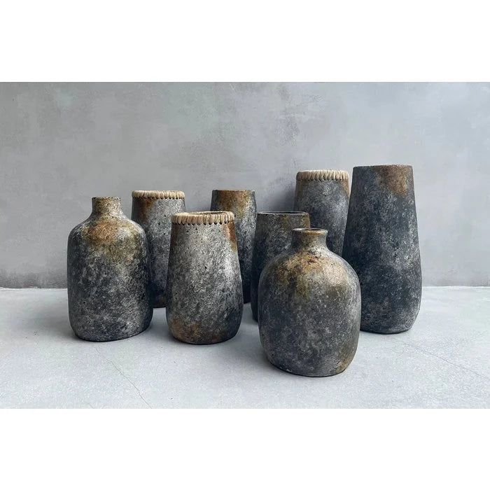 Voeg een vleugje charme toe aan je woonkamer of badkamer met onze strakke Sneaky vazen. Ze zijn gemaakt van terracotta met een prachtig raffia-detail erop en zijn perfect voor gedroogde of verse bloemen. Voor verse bloemen plaatst u een hergebruikt glas of een hergebruikt bakje, zoals een plastic fles of yoghurtpot, in de vaas. Voeg water toe en rangschik je bloemen zoals gewenst: het is een eenvoudige, milieuvriendelijke manier om van verse bloemen te genieten