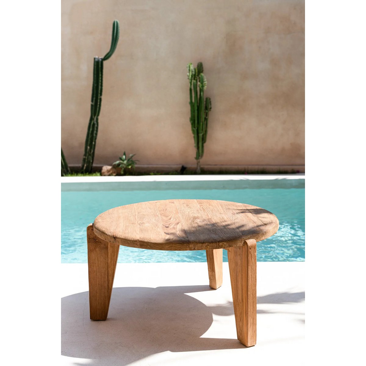 Deze driepotige charmeur is een prachtig designstuk dat uw gasten zeker zal verbazen. Deze milieuvriendelijke salontafel is gemaakt van hergebruikt teakhout en kan eigenlijk een set vormen. We hebben nog twee andere maten beschikbaar die je als combinatie kunt gebruiken. Het rustieke hout van dit stuk past in elk interieur.