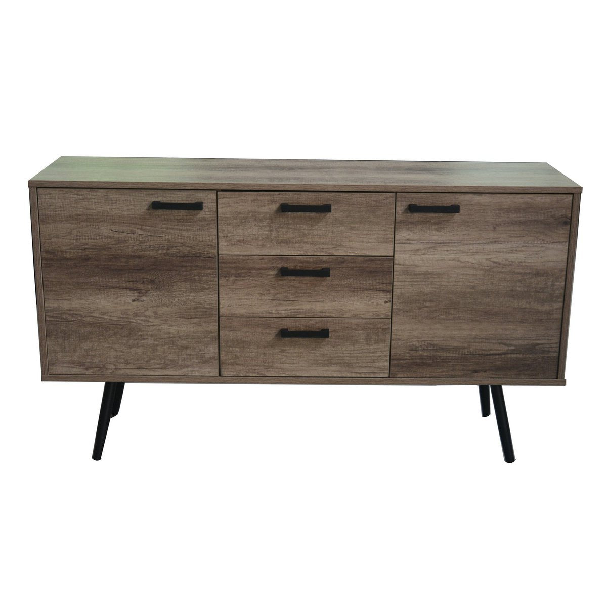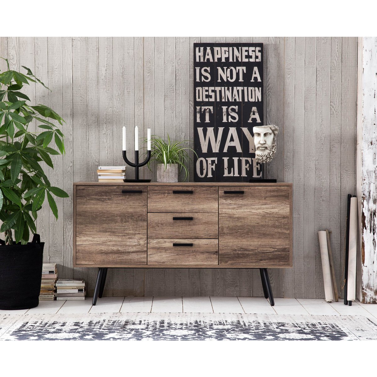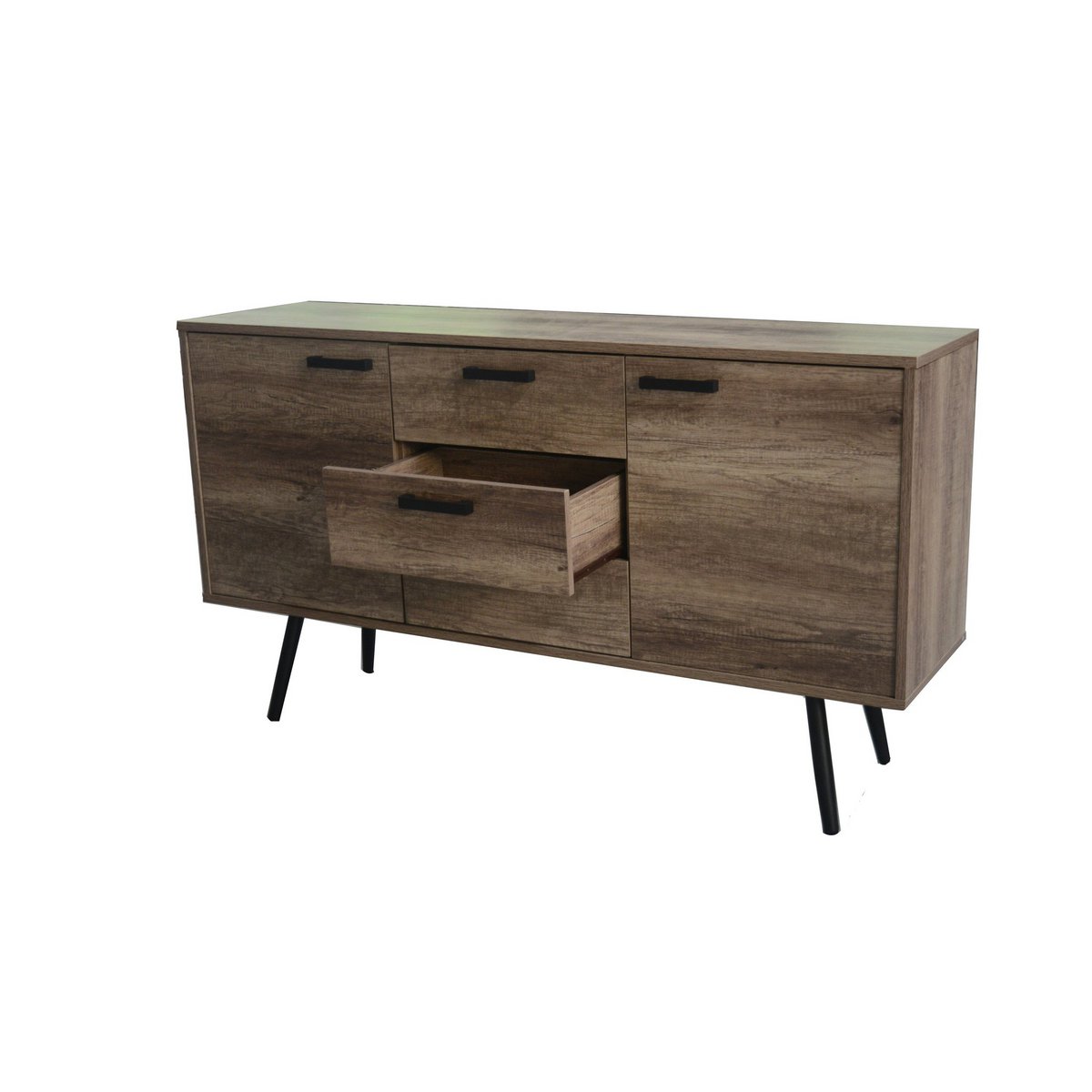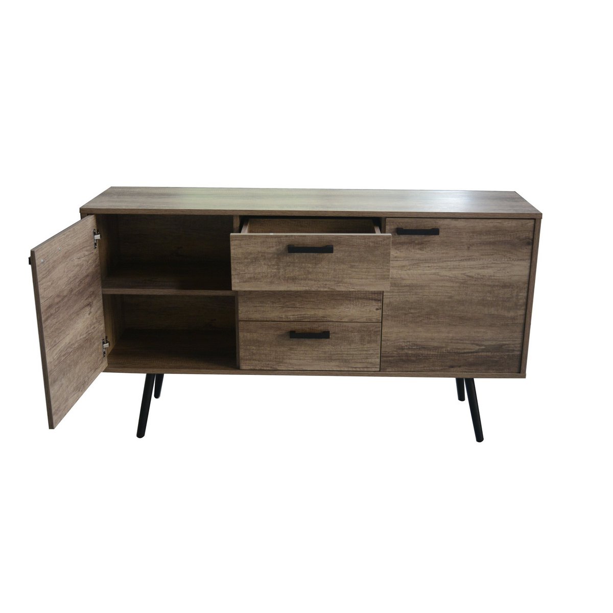 Met twee deuren en drie lades biedt het dressoir voldoende opbergruimte voor al je spullen. Achter elke deur bevindt zich een stevige plank om je spullen netjes te ordenen.