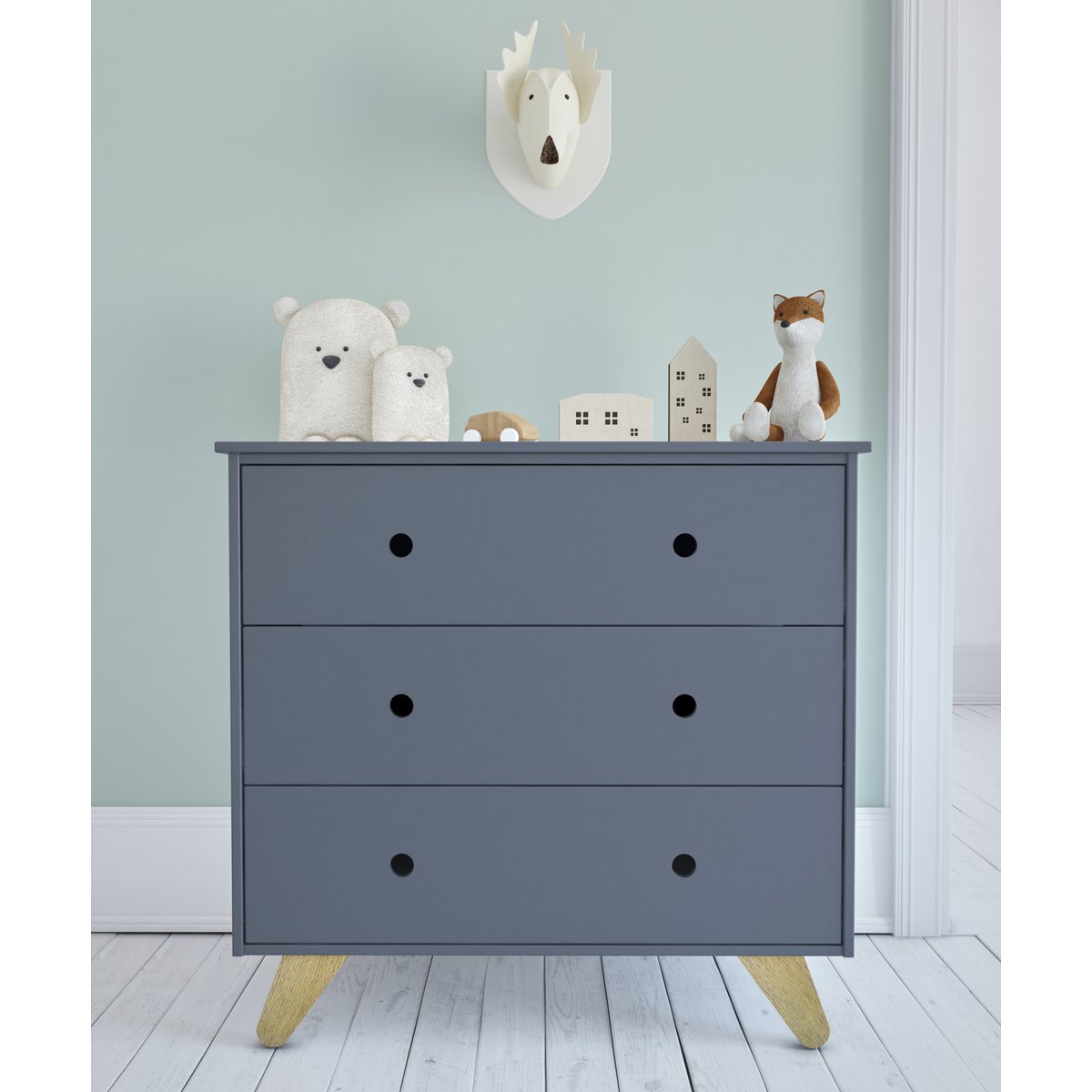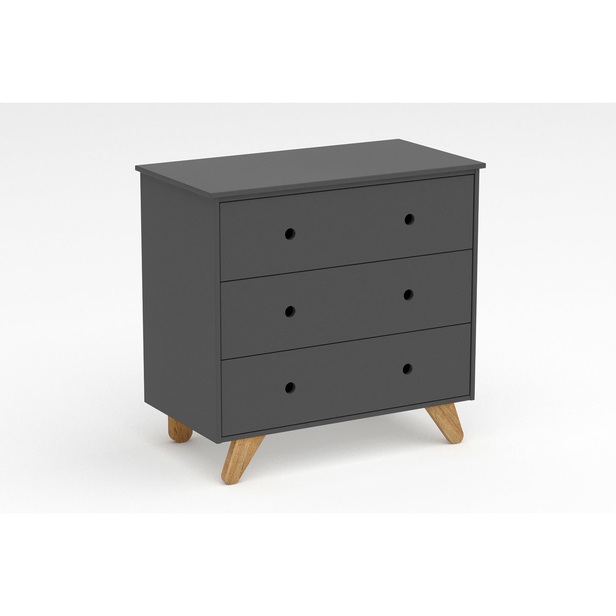 Er kan nauwelijks voldoende opbergruimte zijn. Deze ladekast met drie lades bewijst dat hij op een moderne en stijlvolle manier in de inrichting kan worden geïntegreerd. Het eenvoudige Scandinavische design wordt versterkt door de schuine grenenhouten poten en vingergaten. In drie grote lades is ruimte voor kleding, speelgoed of boeken. De ruimte op de ladekast kan ook worden gebruikt als opberg- of plankruimte. Door de verhoogde ligging van de ladekast krijgt deze een luchtige, lichte uitstraling, waardoor het meubel ook in kleinere ruimtes niet te massief oogt. Hoogwaardige metalen uittrekelementen in de lades zorgen ervoor dat je lang plezier hebt van de ladekast.