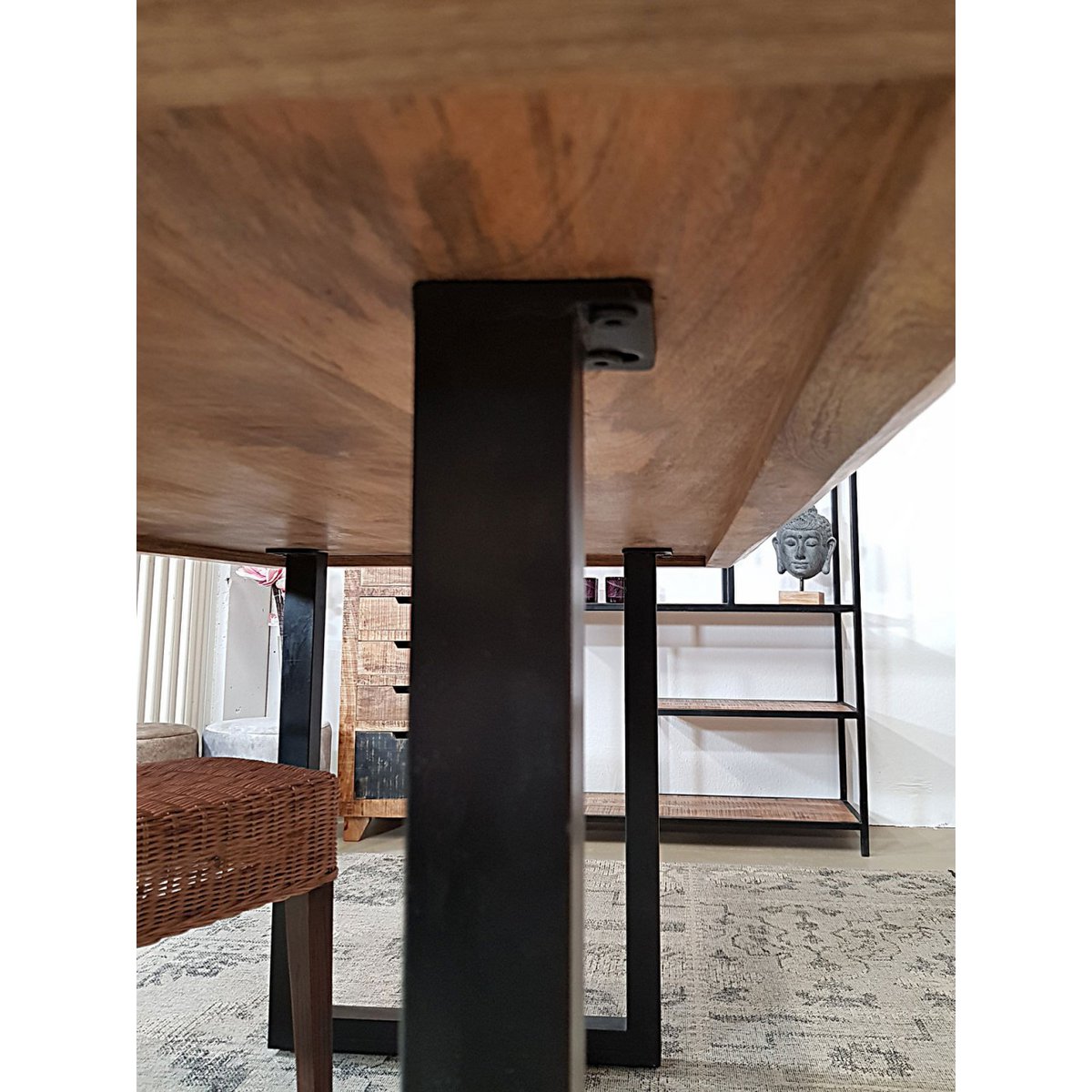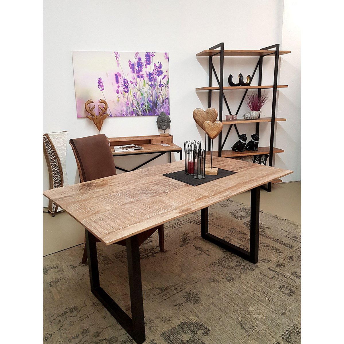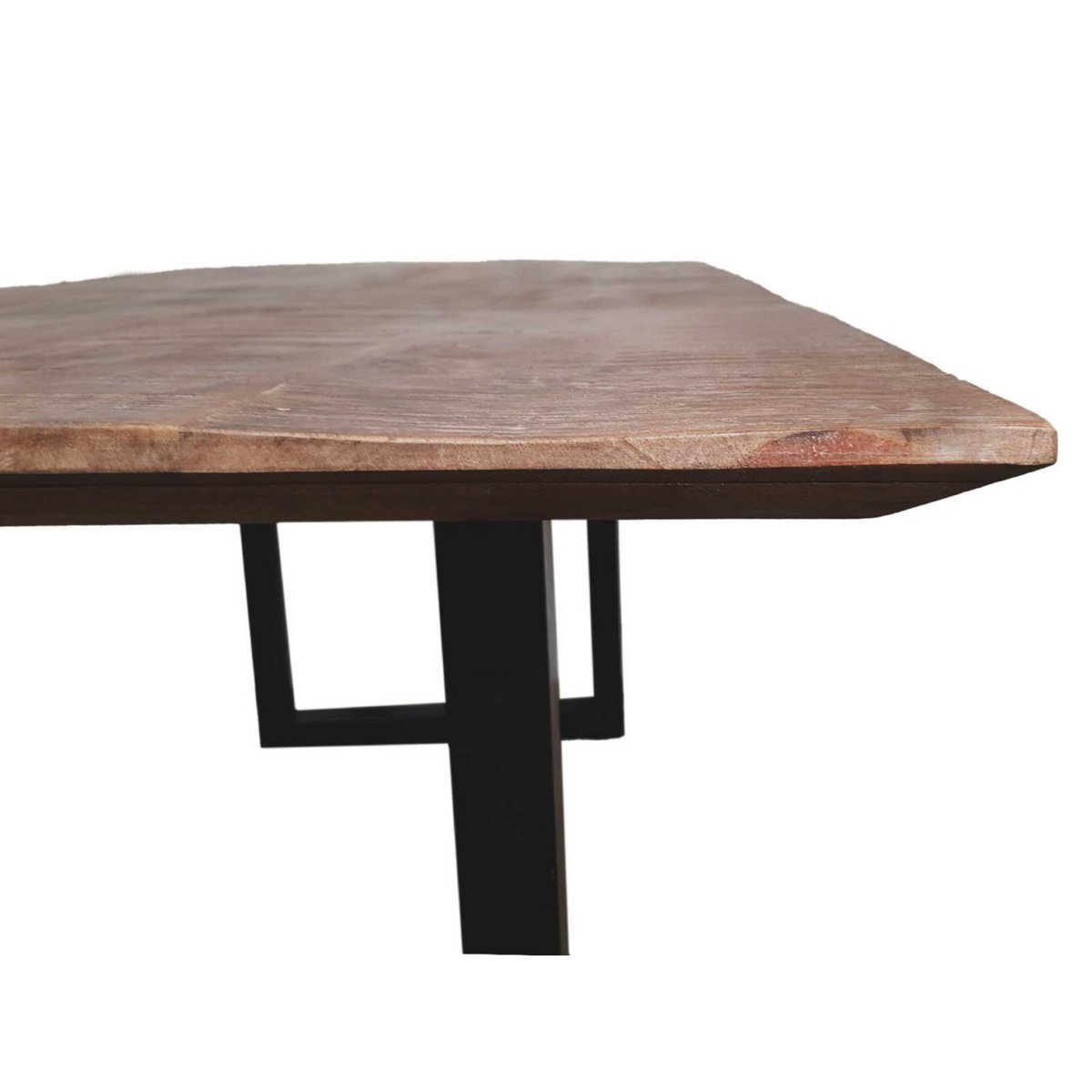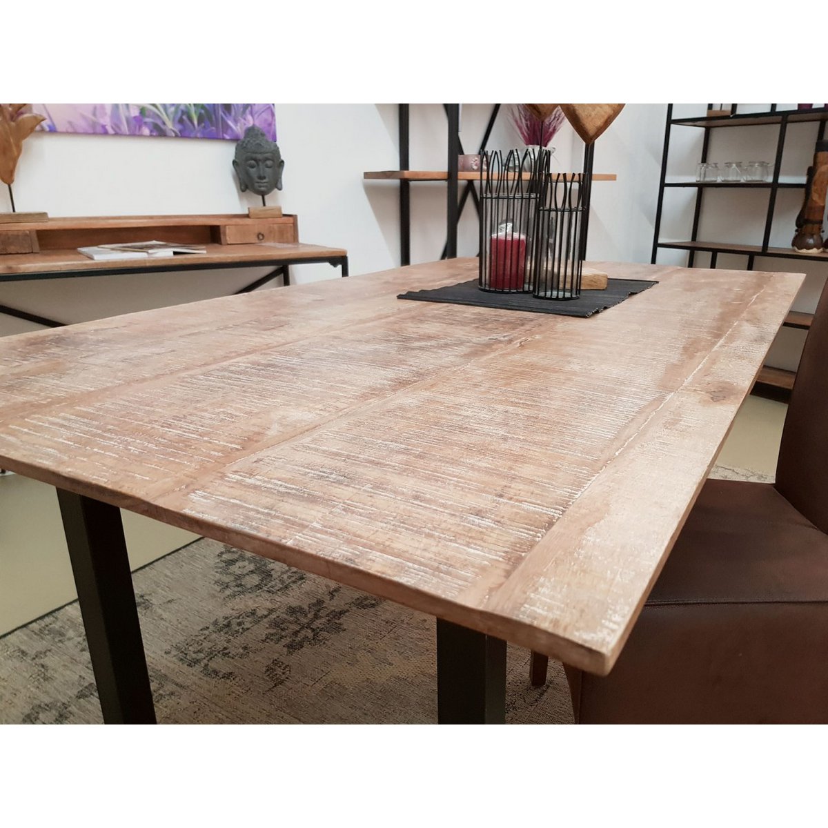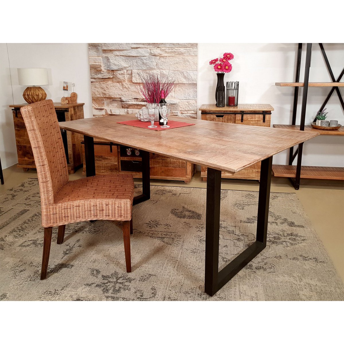 Prachtige eettafel met een massieve vaste houten plaat (ongeveer 2 cm dik) gemaakt van 100% gerecycled massief mangohout. Elke tafel is uniek door de eigen houtstructuur!