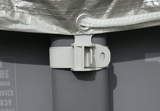 Dankzij de kleine gaatjes in het zeil blijft het zwembadwater ademen en het regenwater kan er zo doorheen lopen. Het afdekzeil wordt bevestigd met een koord, zodat het stevig om het zwembad heen blijft zitten ondanks de weeromstandigheden. Ook is de cover UV-bestendig tegen de natuurlijke zon.