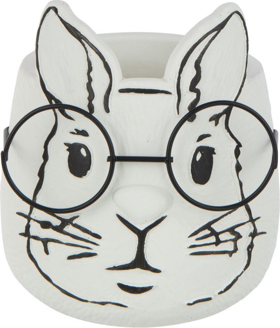 Merk: J-Line, Bloempot Konijn - cement - wit - medium
