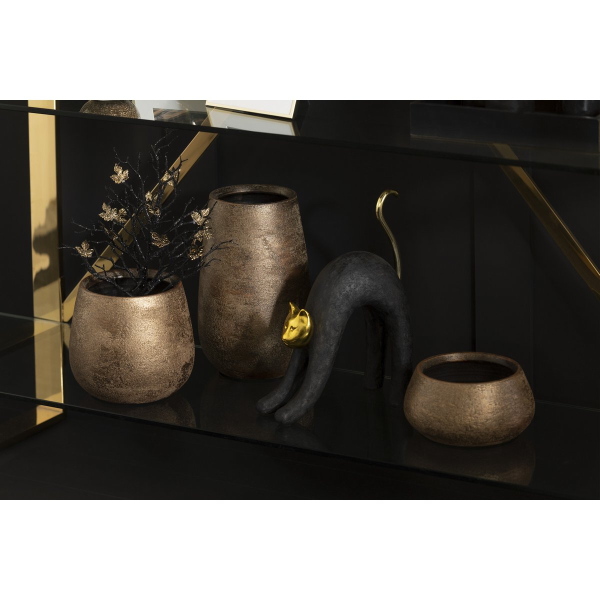 J-Line bloempot Oneffen Ruw - keramiek - goud - medium - Ø 20 cm