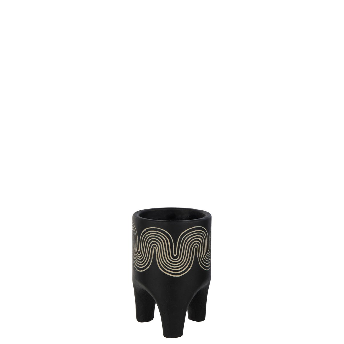 Merk: J-Line, Bloempot Op Voet Golf - cement - zwart - small