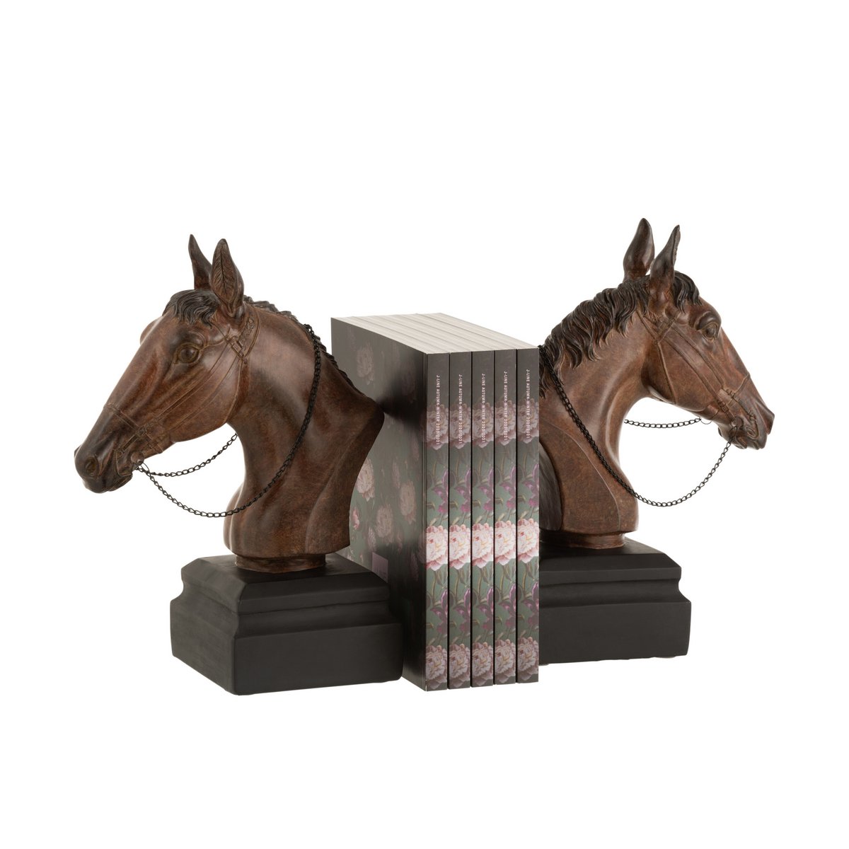 Merk: J-Line, Set 2 Boekensteun Paard - polyresin - bruin