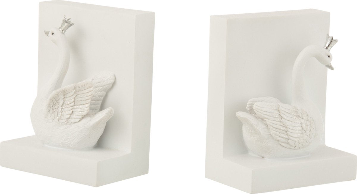 J-Line boekensteun Zwaan - Polyresin - wit - 2 stuks