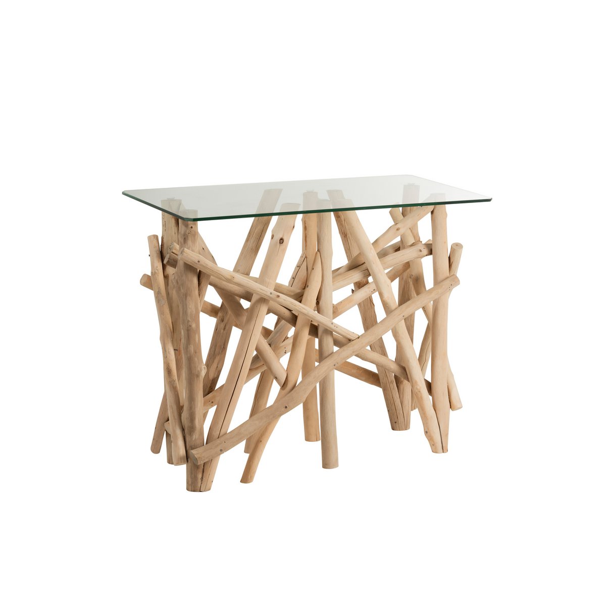 Merk: J-Line, Console Rechthoek Takken - hout/glas - naturel