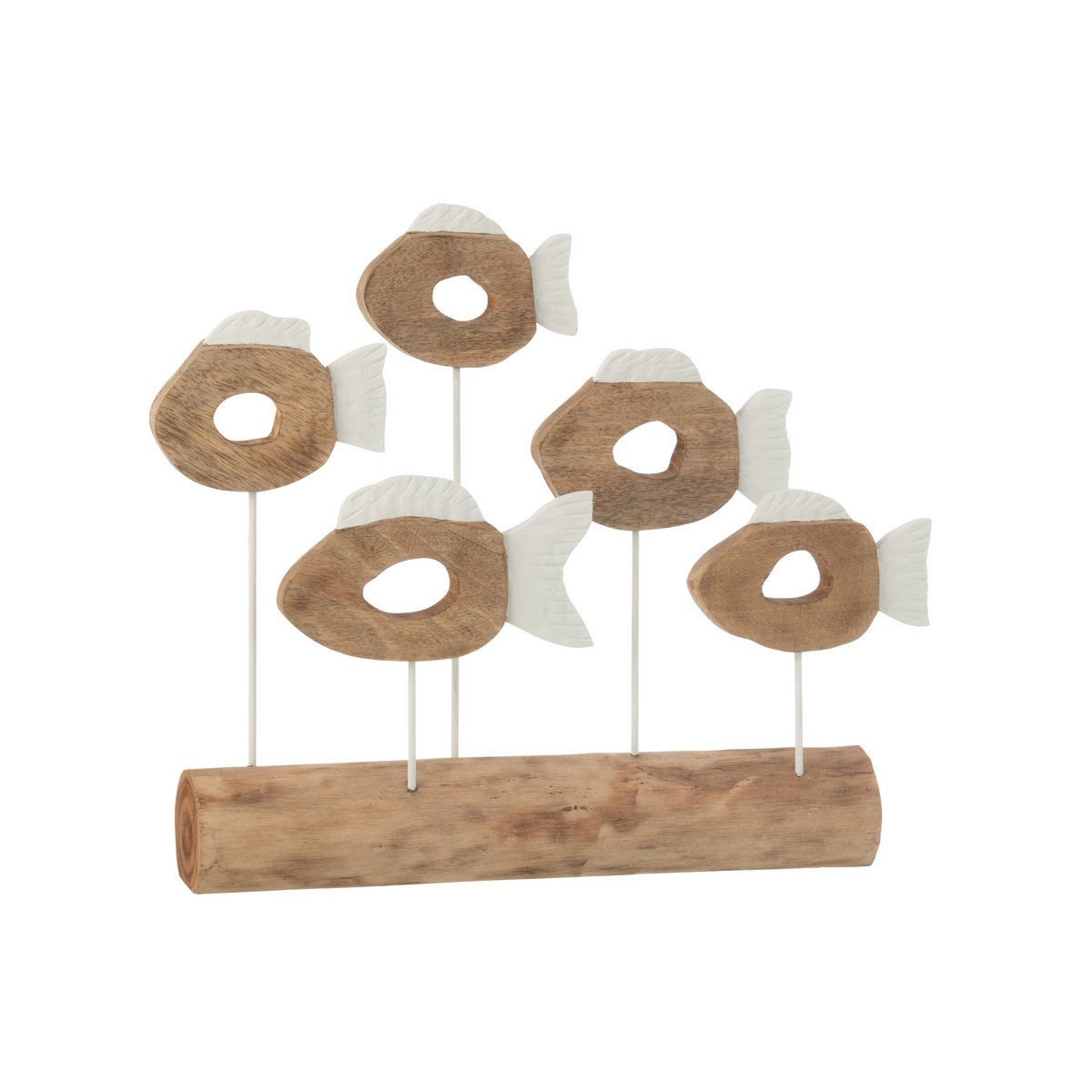 J-Line decoratie Vis 5 Op Voet - hout - wit/naturel