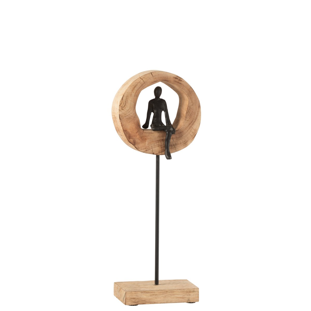 J-Line figuur Denk Ring - hout/aluminium - zwart/naturel