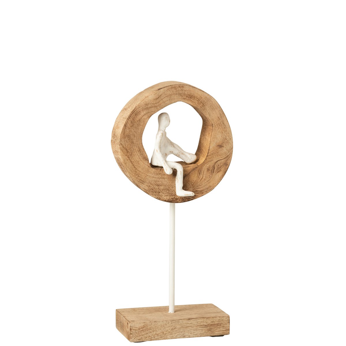 J-Line figuur Denker Ring - hout/aluminium - naturel/wit