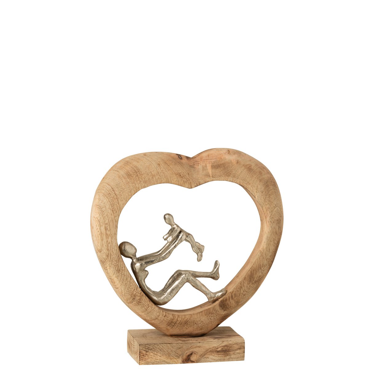 J-Line Figuur Ouder Met Kind Hart Mangohout/Aluminium Naturel/Wit