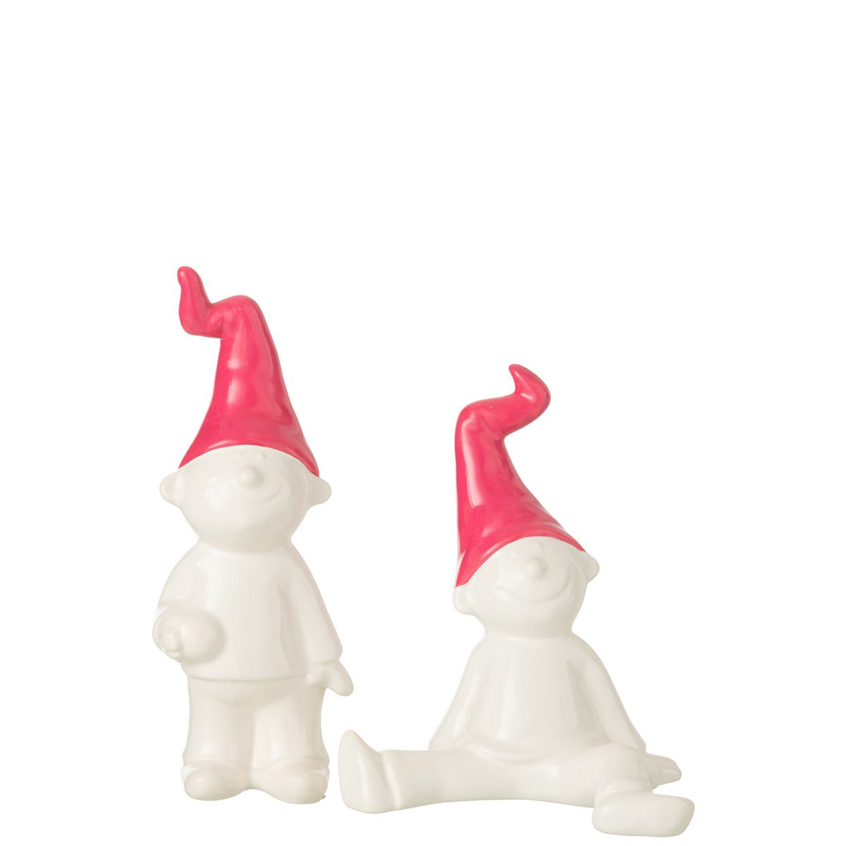 J-Line Kabouter Staand Keramiek Wit/Fuschia Small