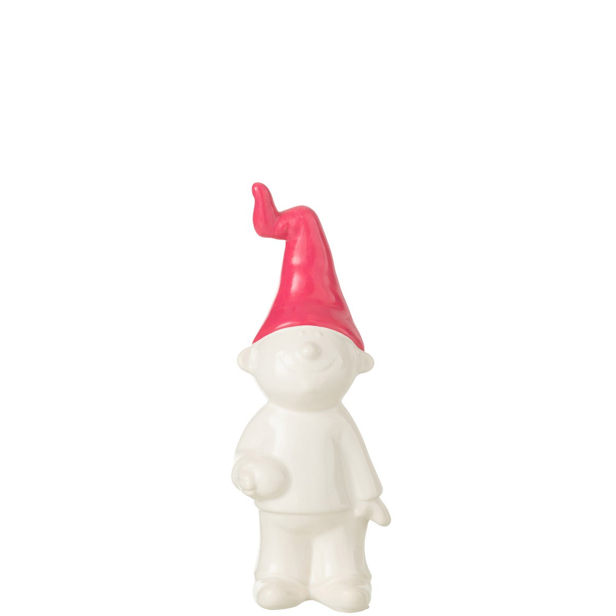 Merk: J-Line, Kabouter Staand Keramiek Wit/Fuschia Small