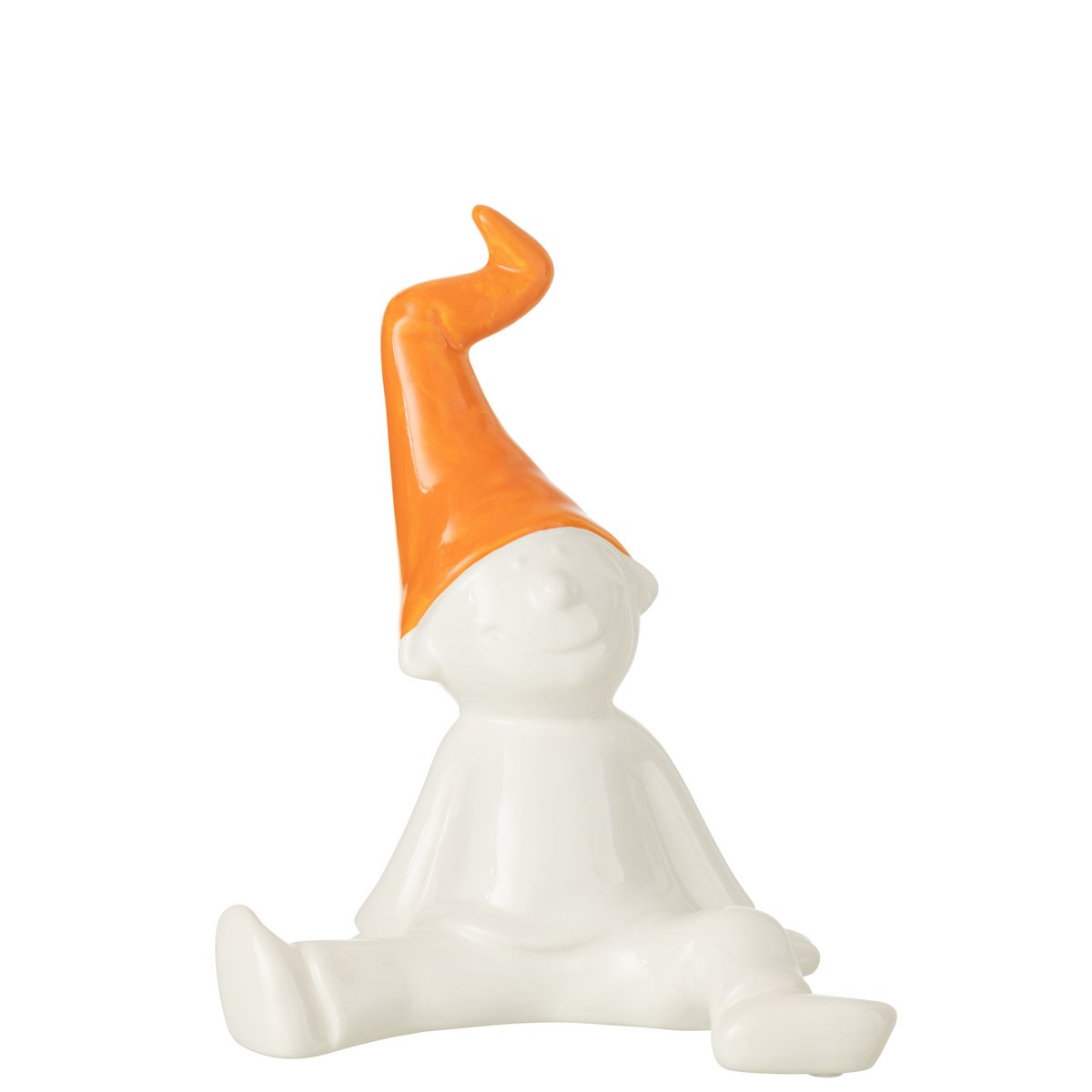 J-Line Kabouter Zittend Keramiek Wit/Oranje Large
