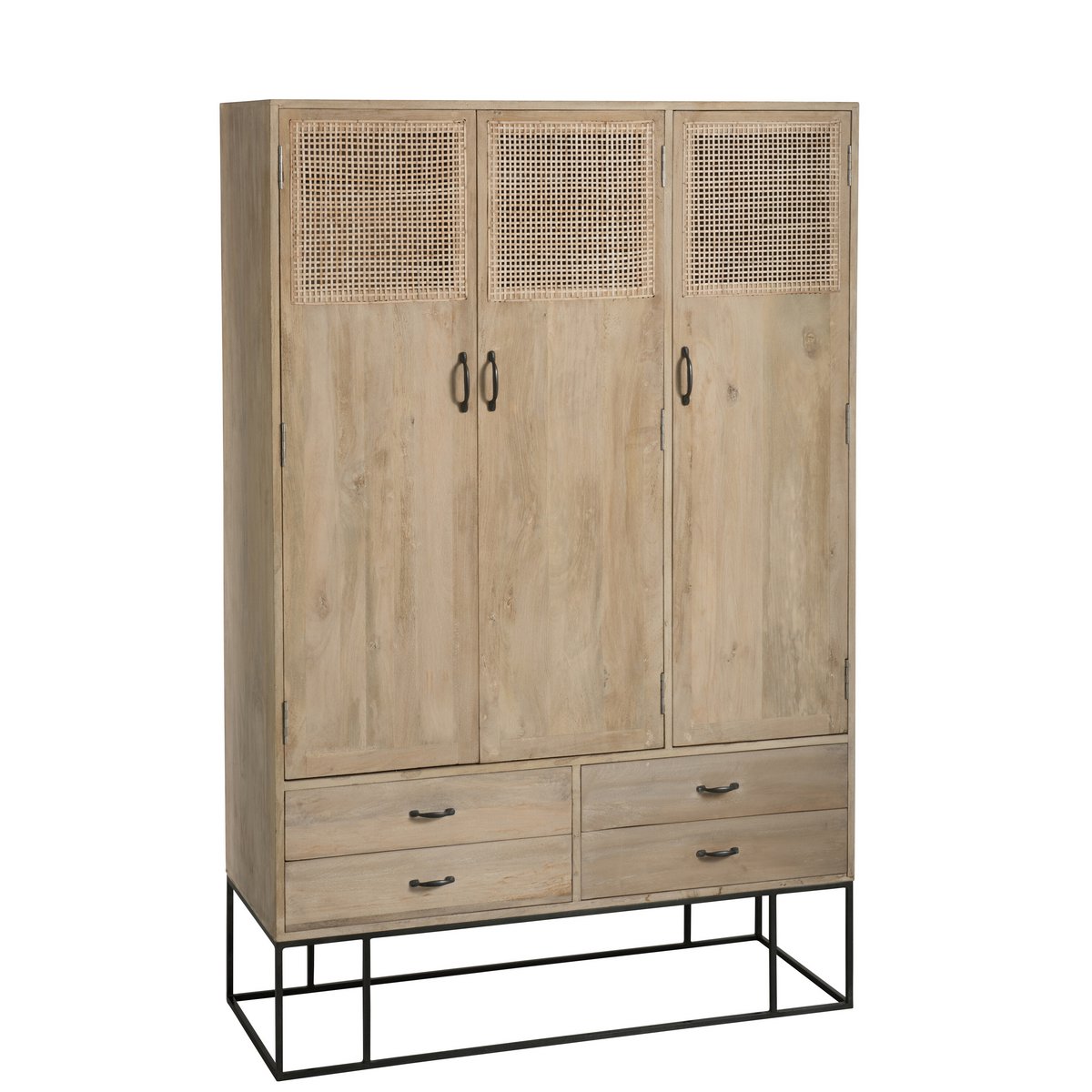 Merk: J-Line, Kledingkast Geweven - 3 deuren + 4 laden - hout - naturel