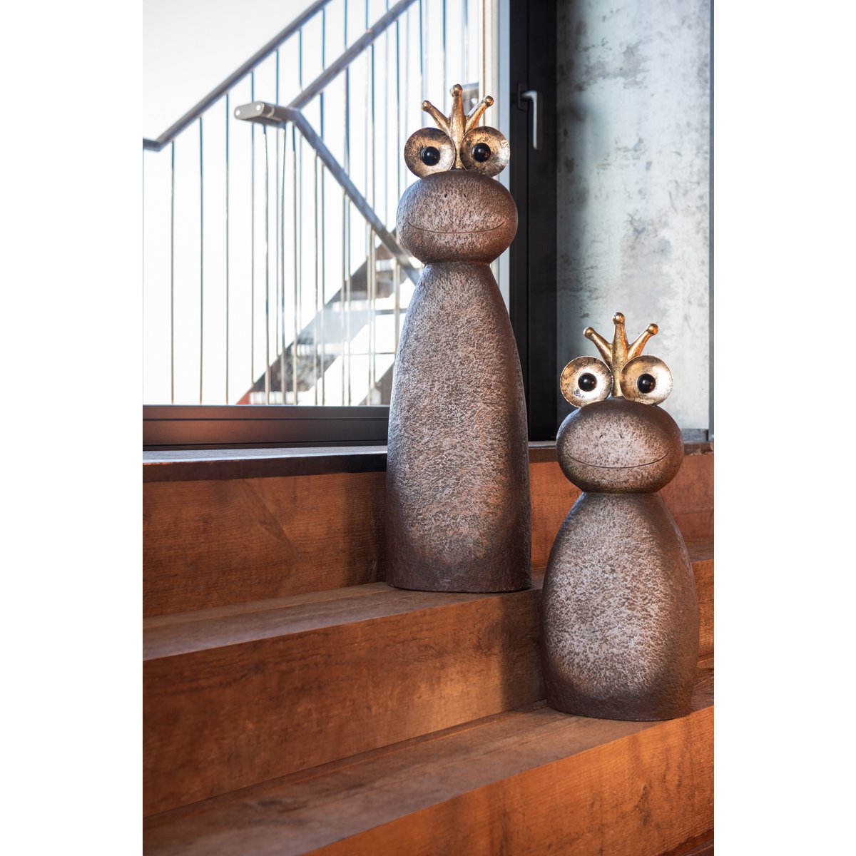 Met een hoogte van bijna 80cm is deze kikker met een gouden kroon zeker een blikvanger in huis. De grappige kikkers zijn in 2 maten verkrijgbaar. Ze trekken zeker de aandacht op uw kast of plank in elke ruimte.