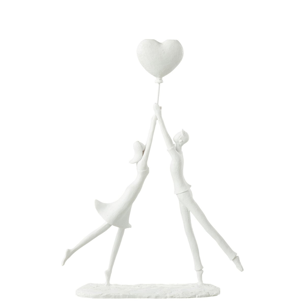 De “Koppel Staand Hart Ballon” van J-Line is een speels en romantisch beeld van twee geliefden in een kusmoment, waarbij een hartvormige ballon de liefde letterlijk laat zweven. Volledig uitgevoerd in wit polyresin straalt het beeldje puurheid, tederheid en elegantie uit. Een liefdevol cadeautje dat perfect past bij koppels die geloven in de magie van de kleine momenten – en altijd klaarstaan met een warme omhelzing.