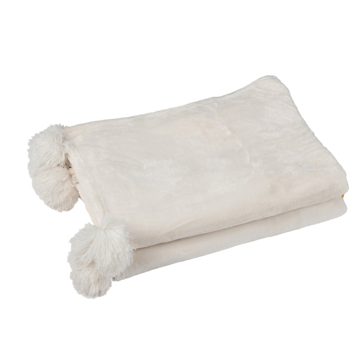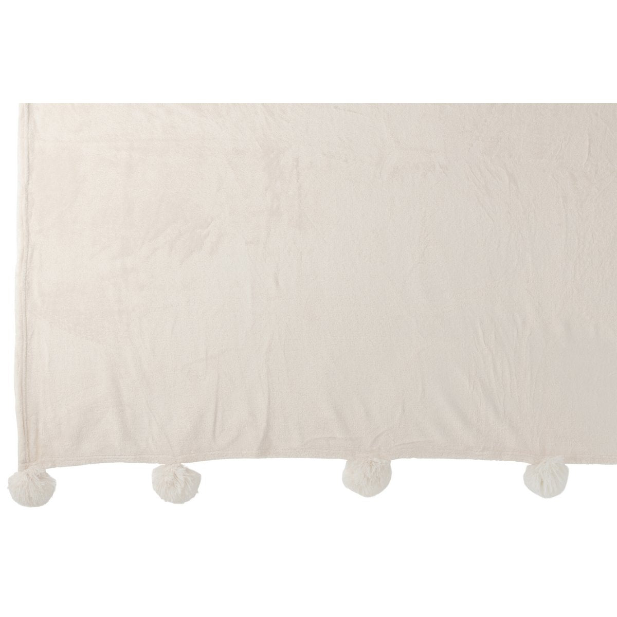 J-Line Plaid Pompon - polyester - crème - 170 x 130 cm
