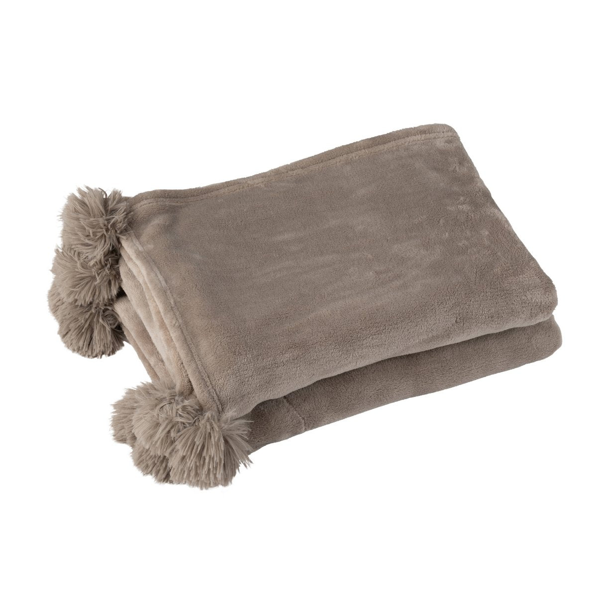 J-Line Plaid Pompon - polyester - taupe - 170 x 130 cm