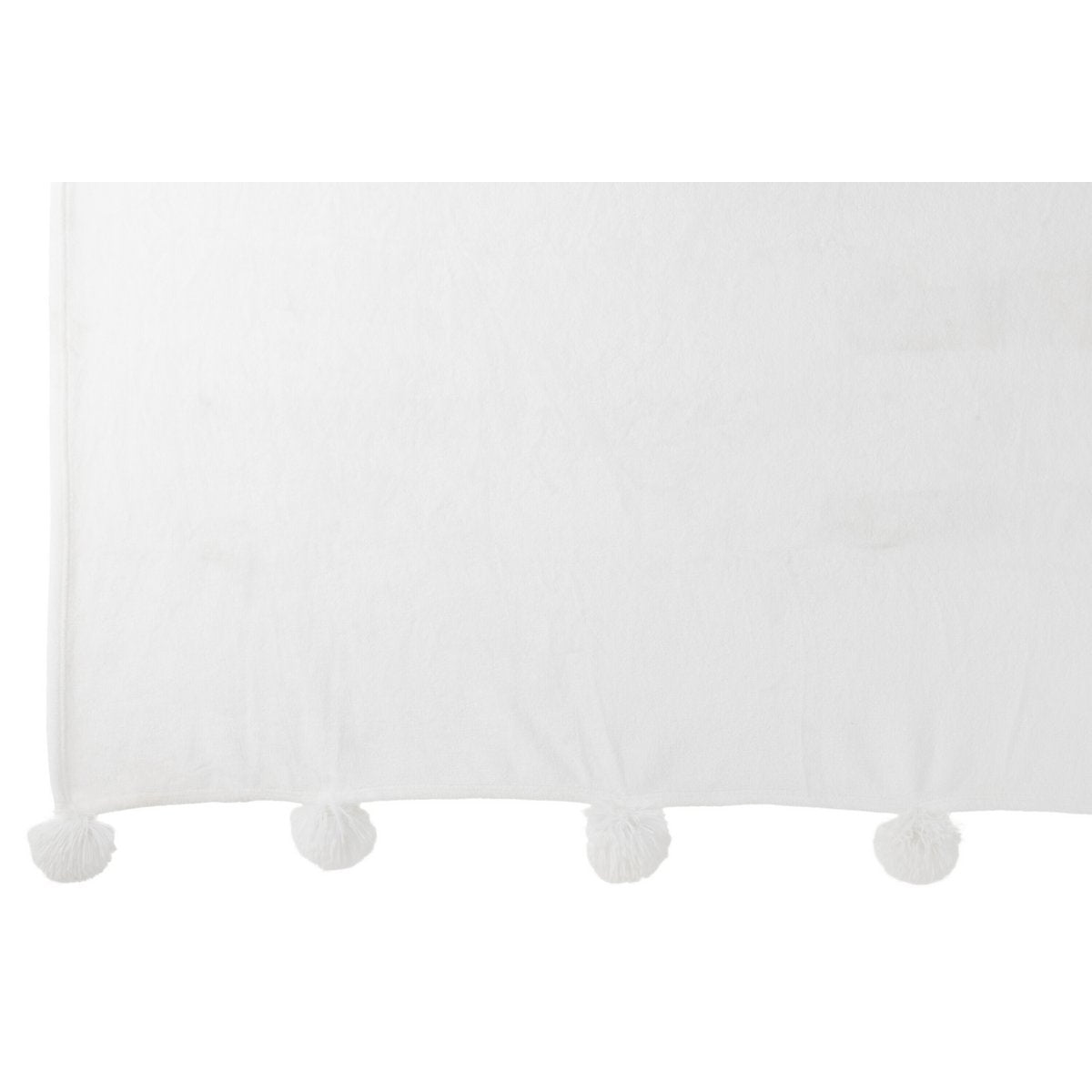 J-Line Plaid Pompon - polyester - wit - 170 x 130 cm