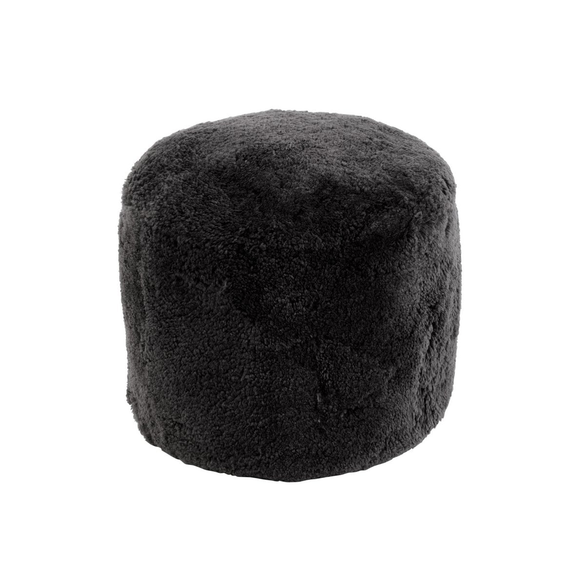 J-Line poef Rond Schapenvel - textiel - donkergrijs