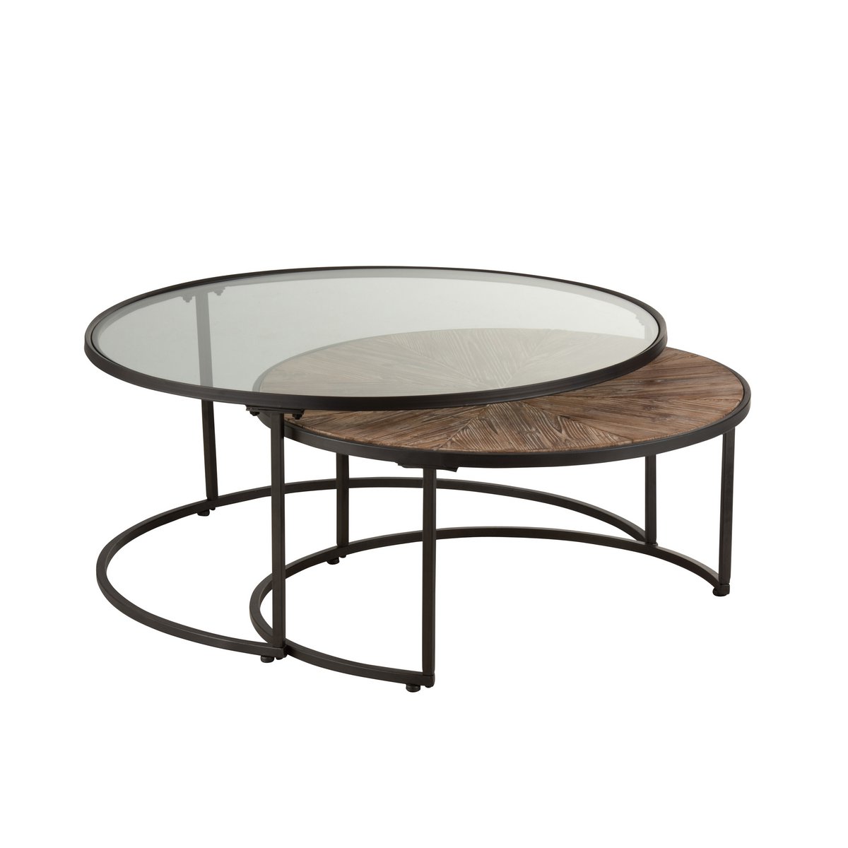 Merk: J-Line, Set Van 2 Salontafels Rond Metaal Zwart - 91 x 91 x 41 cm