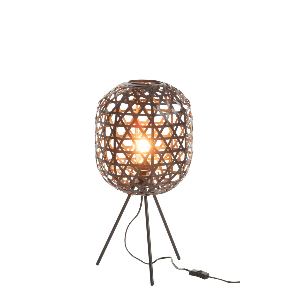 Merk: J-Line, Tafellamp Tripod Rond - bamboe/metaal - zwart