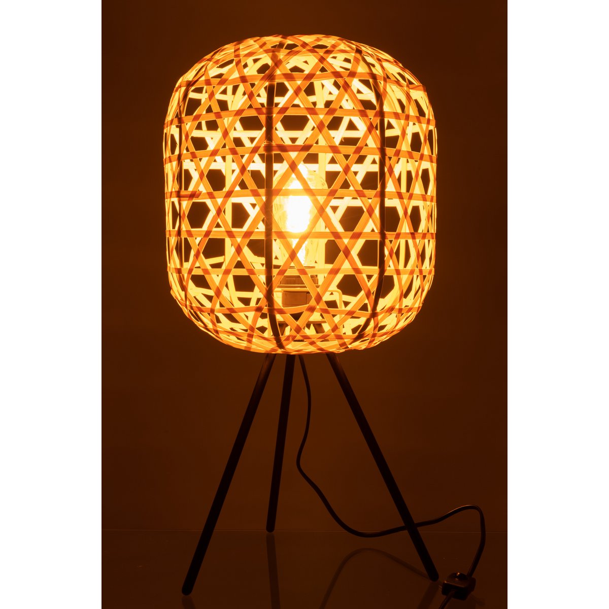 Merk: J-Line, Tafellamp Tripod Rond - bamboe - naturel/zwart