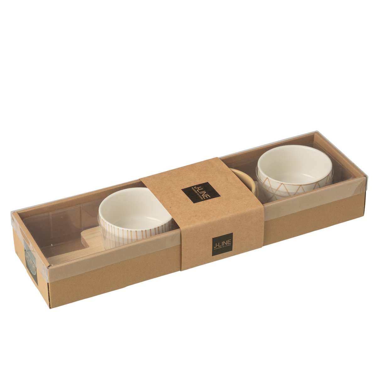J-Line Tapasservies 3 Sets + Bamboe Schaaltje In Doos Crème/Wit
