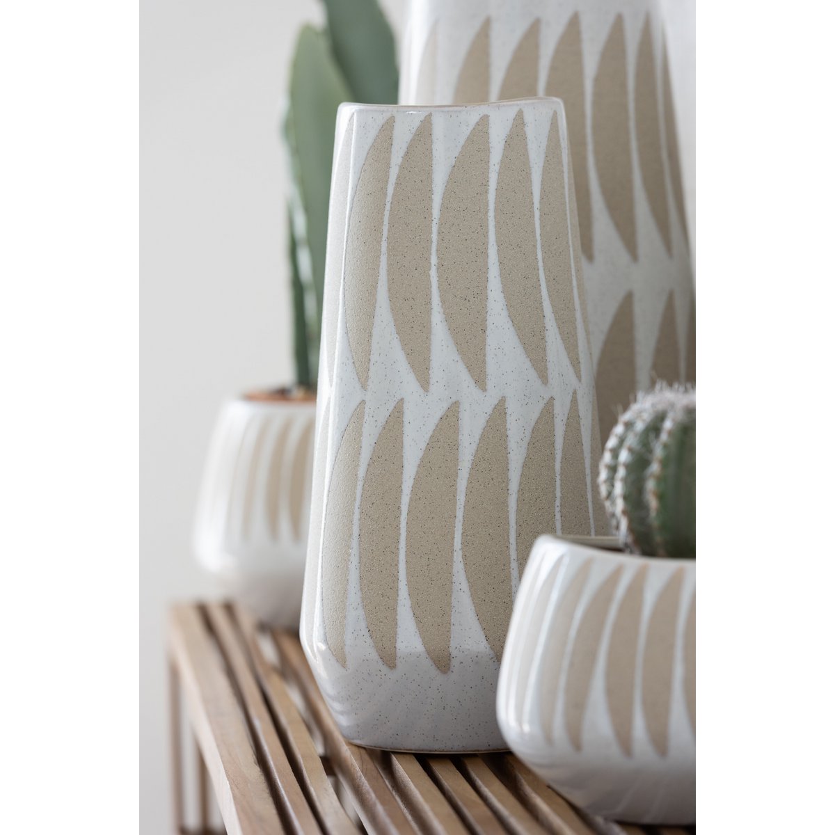 J-Line vaas Kai - keramiek - beige/wit - small - 32 cm hoog