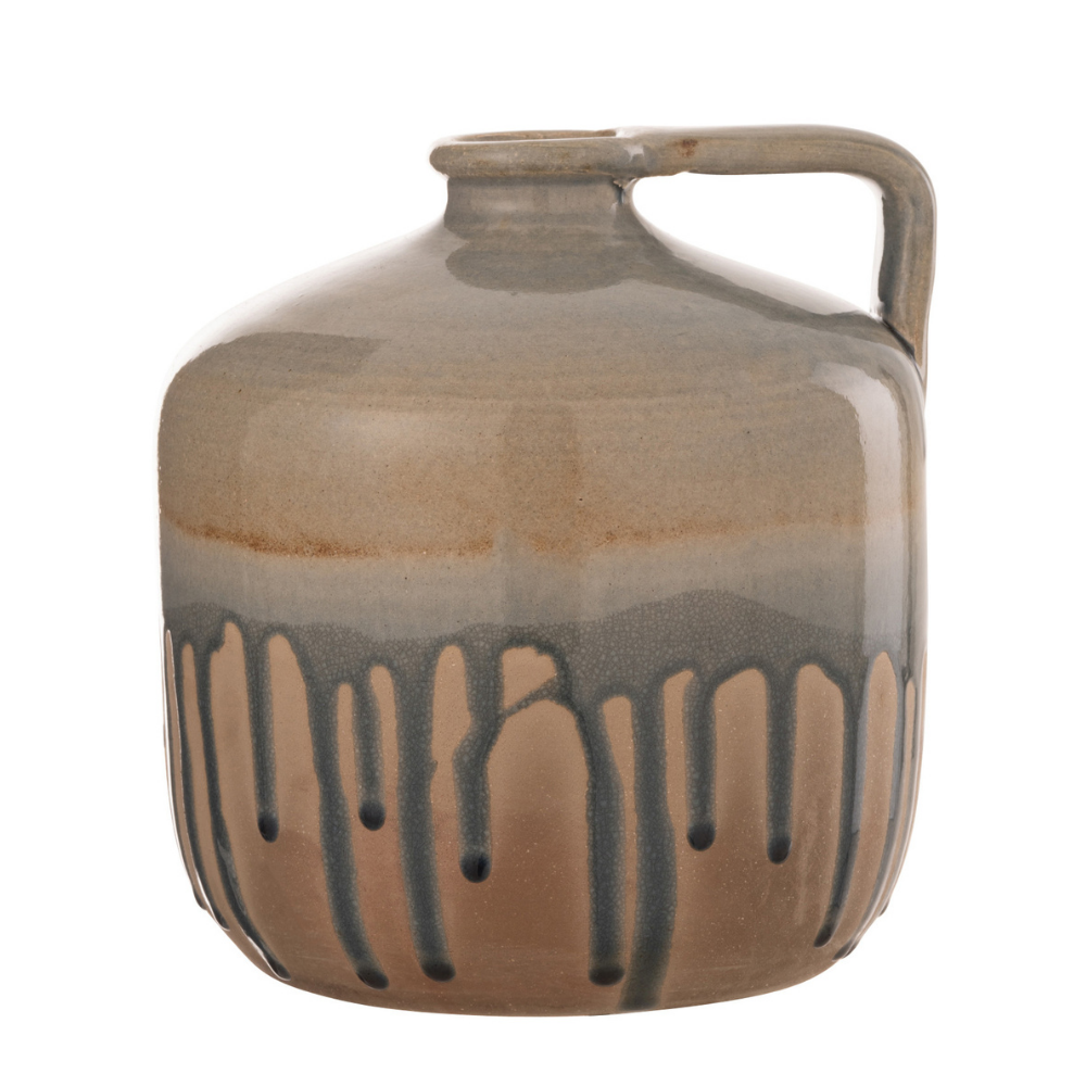 J-Line vaas Kruik Handvat - keramiek - beige/grijs - small - Ø 21 cm