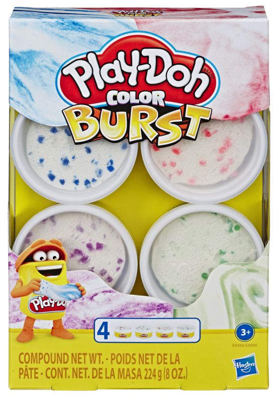 In het Play-Doh Kleur Explosie 4-Pack zitten 4 potjes klei met gekleurde spikkels, voor een speciaal effect. Kinderen kunnen er dingen mee kleien of de klei gebruiken bij andere Play-Doh sets. De potjes lijken op ijsbakjes. Inclusief roller. Geschikt voor kinderen vanaf 3 jaar.