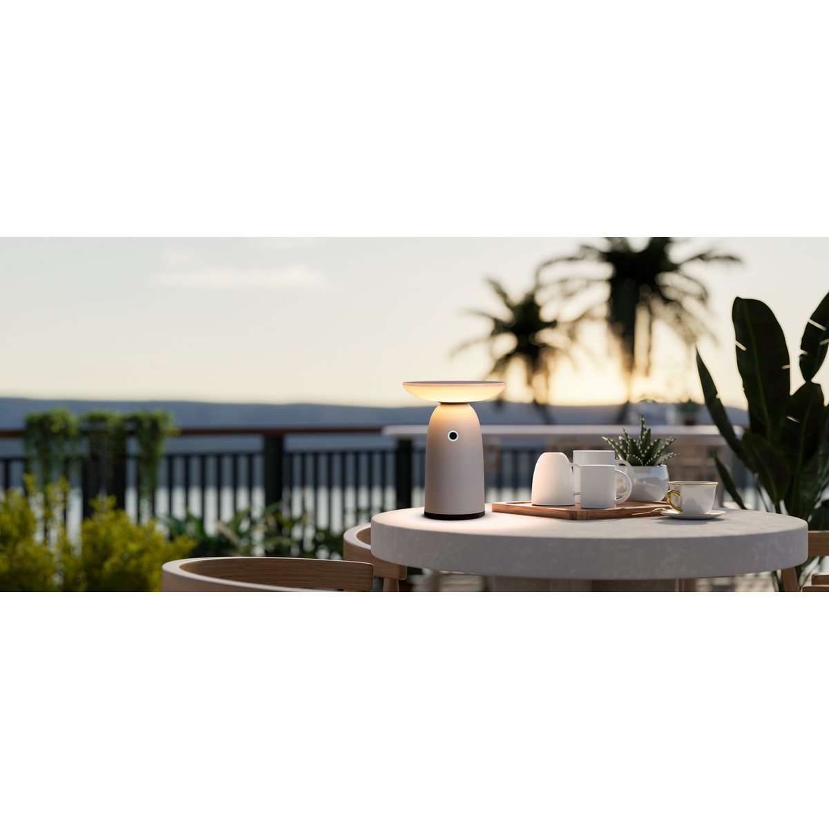 Met 1000 lumen lichtsterkte, dimbare aangename warm witte LED-verlichting (3000 K), een ingebouwde Li-Ion accu en automatische schemersensor is deze spatwaterbestendige (IP44) tafellamp perfect voor sfeervolle verlichting van tuin en terras.