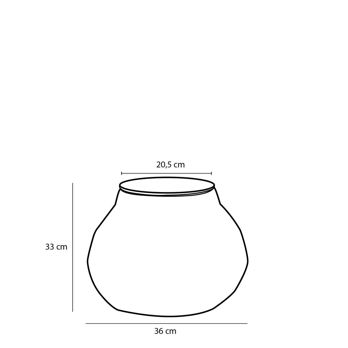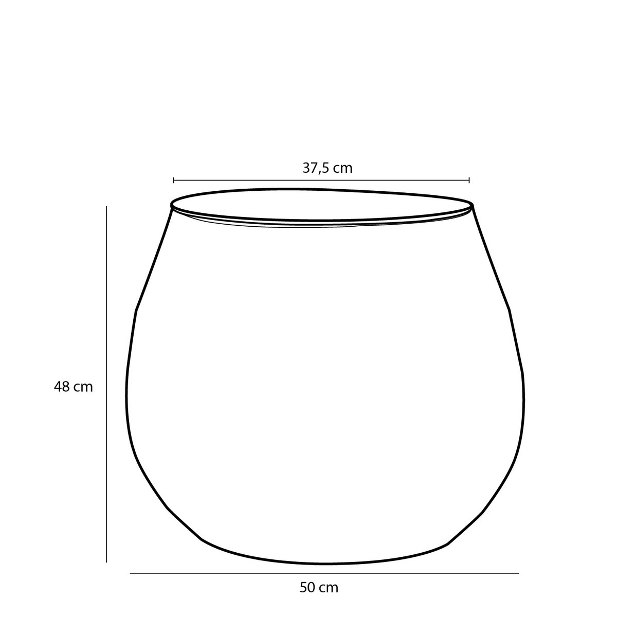 De afmetingen zijn H48 x Ø50 cm waarvan de opening een diameter van 37,5 cm en H33 x Ø36 cm waarvan de opening een diameter van 20,5 cm.