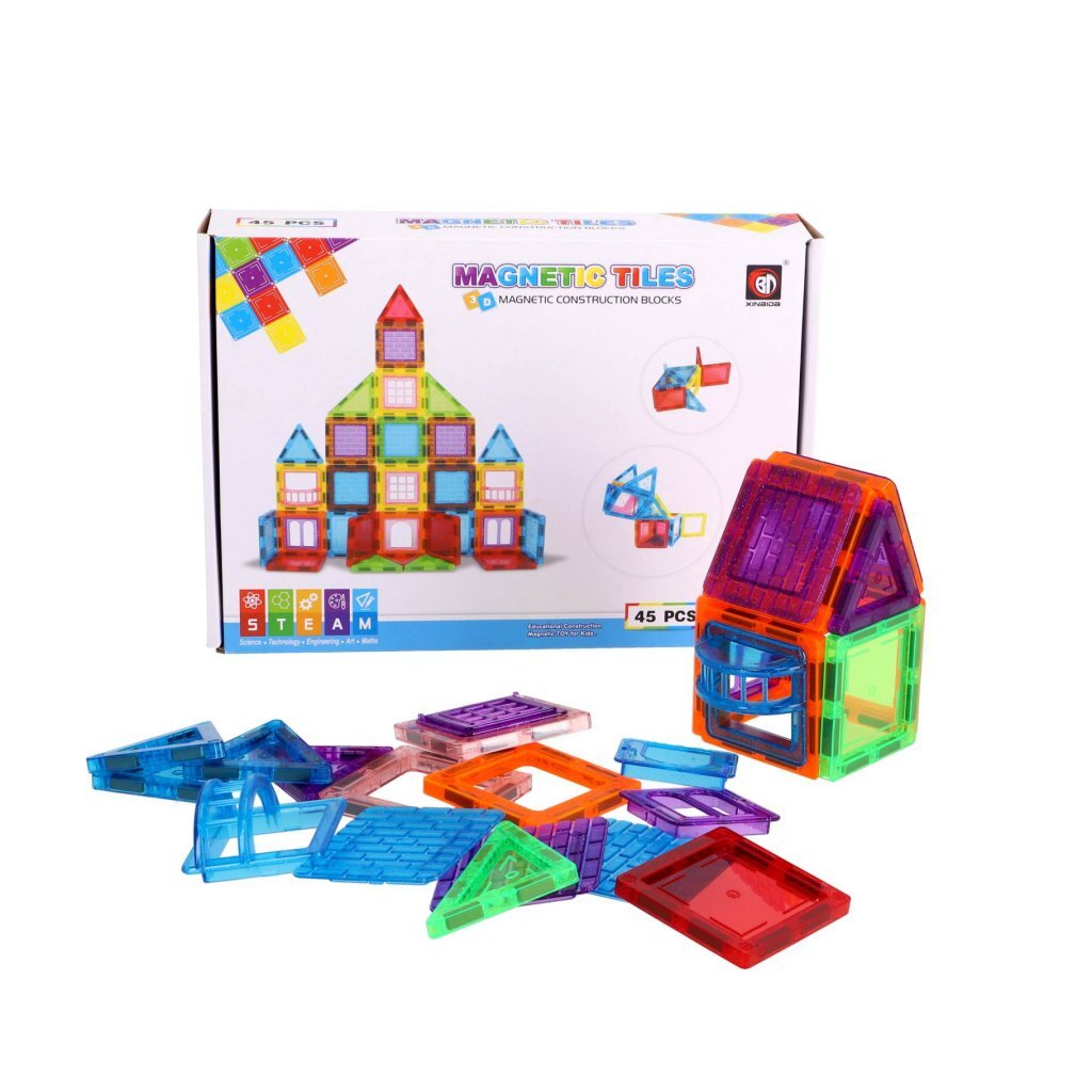 Maak de meest geweldige bouwwerken met deze 45-delige bouwset! Deze magnetische tegeltjes kunnen op allerlei verschillende manieren aan elkaar verbonden worden, waardoor jij werkelijk alles kunt maken dat je maar kunt bedenken.