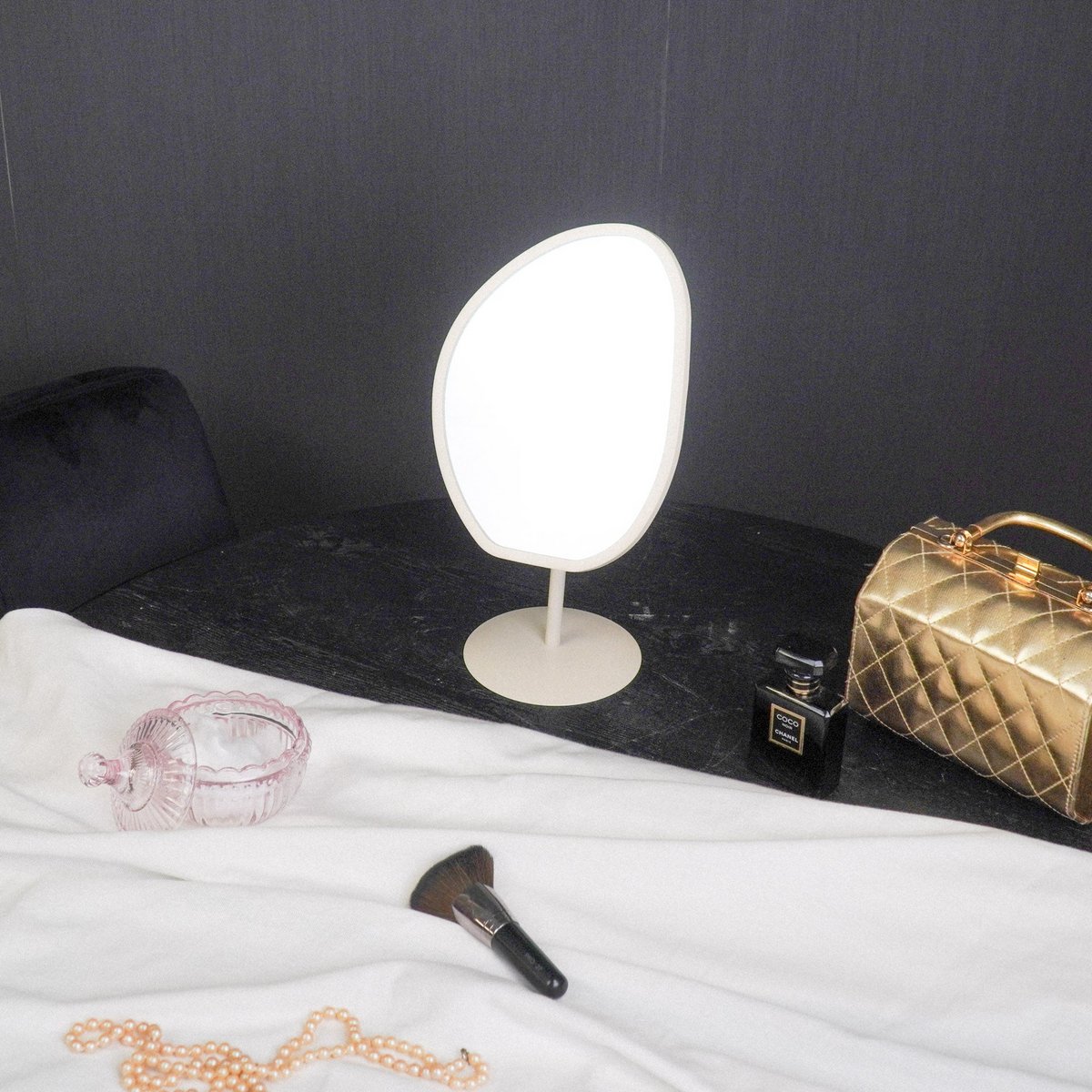 Staande make-up spiegel beige