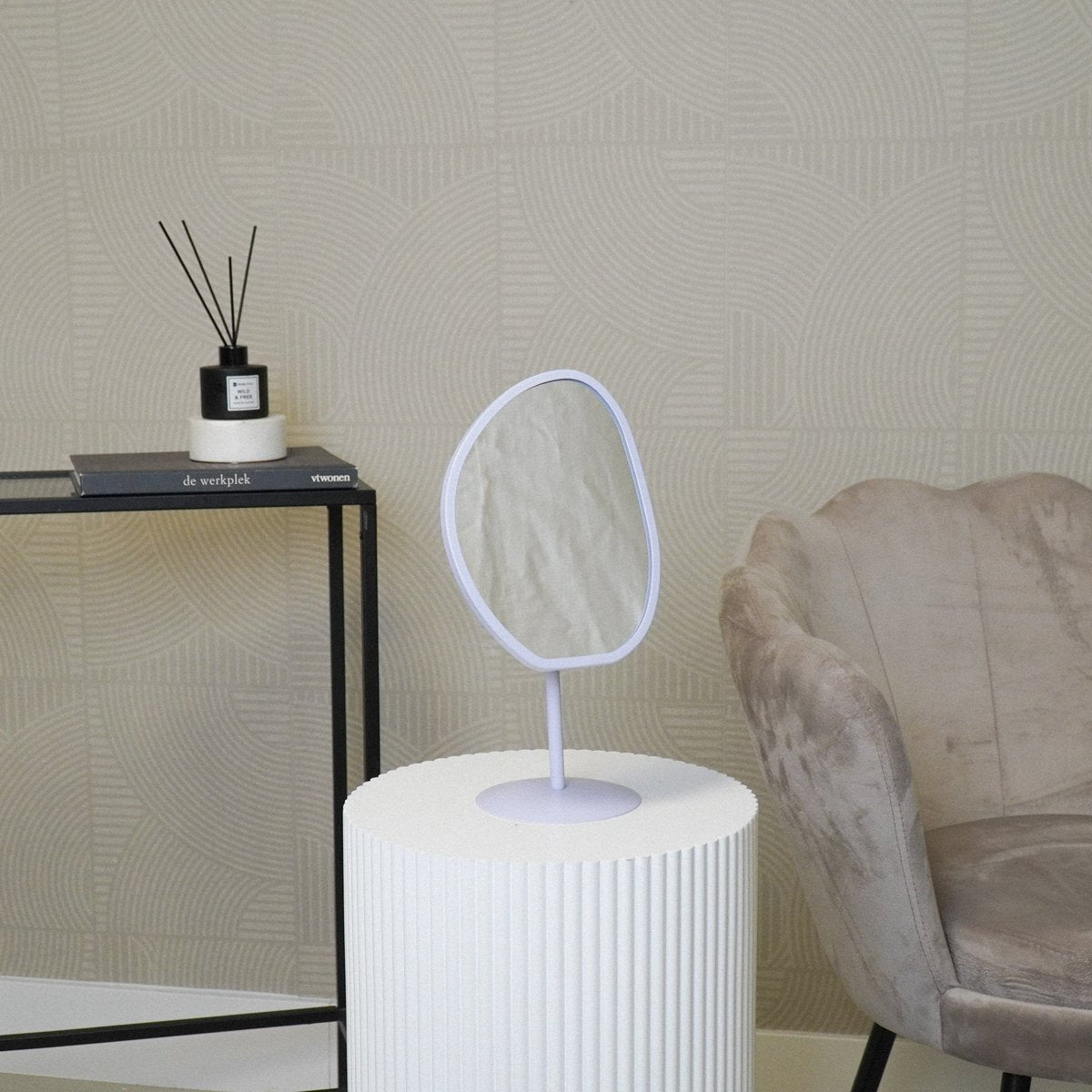 Staande make-up spiegel lila