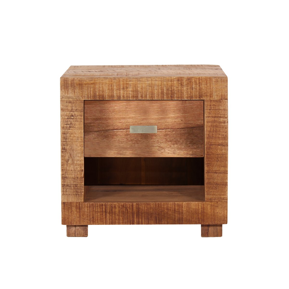 Dit nachtkastje overtuigt door zijn uiterlijk en functionaliteit. Op de plank is ruimte voor een wekker of een leeslamp. Het open vak biedt de mogelijkheid om boeken of kranten binnen handbereik op te bergen. Extra opbergruimte is verborgen achter de lade. Het nachtkastje is gemaakt van robuust mangohout. Dit juweeltje is klaar om bij u in te trekken.