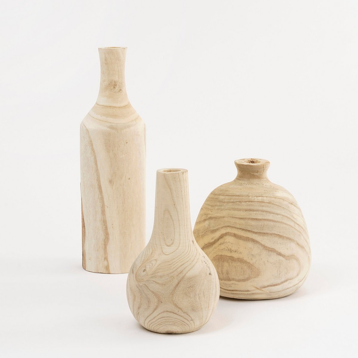 Pia Vaas - H47 x Ø13 cm - Paulownia Hout - Lichtbruin