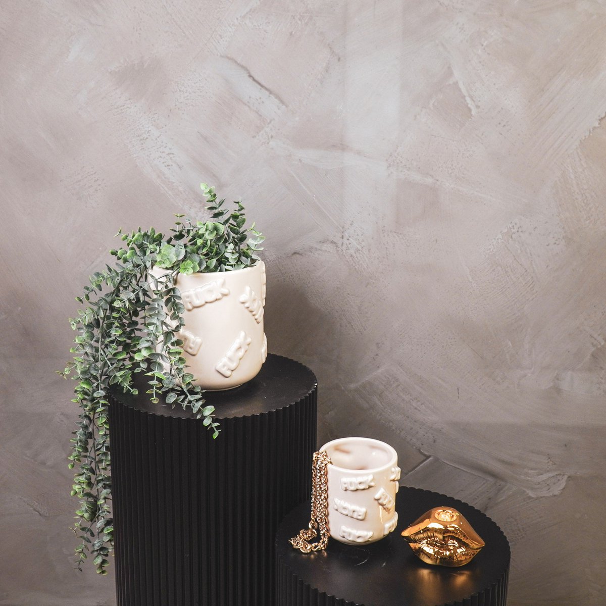 Pot - 'FUCK' - Keramiek - Beige -17,5x17,5x17,5cm