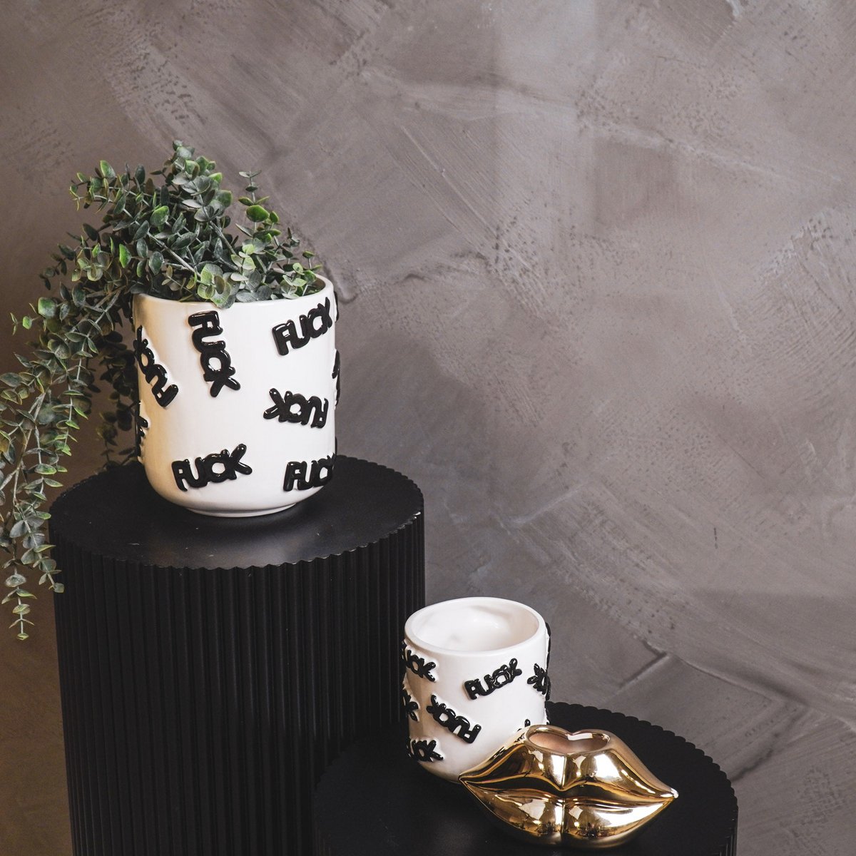 Pot - 'FUCK' - Keramiek - Wit/Zwart - 17,5x17,5x17,5cm