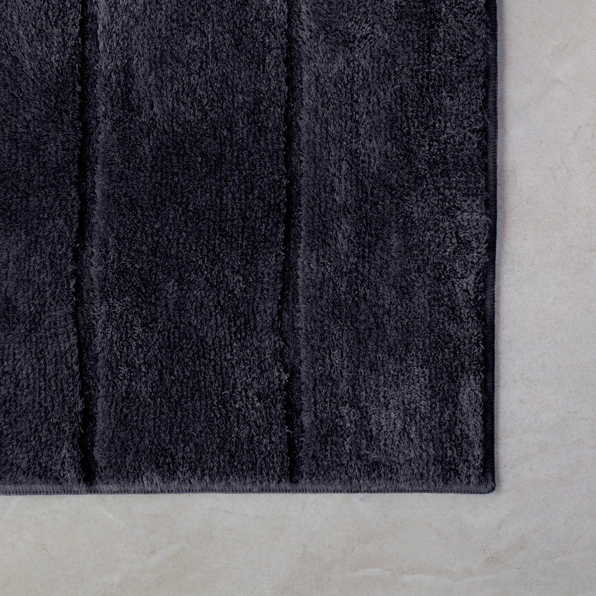 De Ray badmat is hoogpolig en voelt heerlijk zacht aan de voeten. De antisliplaag zorgt ervoor dat de mat op zijn plek blijft liggen. Acrylgaren droogt snel en is daardoor zeer hygiënisch. Door de hoge/lage poolhoogte heeft de mat een subtiel gestreept dessin.