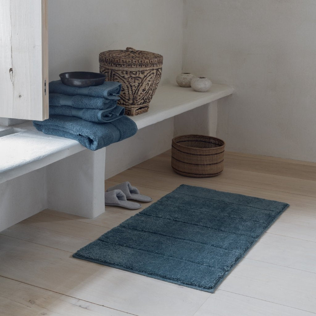 De Ray badmat is hoogpolig en voelt heerlijk zacht aan de voeten. De antisliplaag zorgt ervoor dat de mat op zijn plek blijft liggen. Acrylgaren droogt snel en is daardoor zeer hygiënisch. Door de hoge/lage poolhoogte heeft de mat een subtiel gestreept dessin. Specificaties Materiaal 100% acryl met antisliplaag Wasvoorschrift 40° - mag in de droger